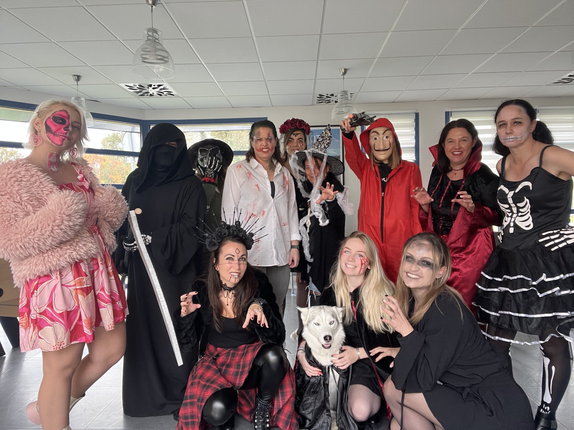 Comme chaque année, nos collègues ont sorti leurs déguisements les plus effrayants : sorcières, vampires, démons… et même notre mascotte Oslo 🐶 a rejoint la horde !